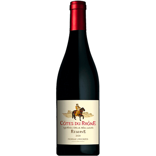Le Côtes du Rhône « Réserve » de la Famille J.M. Cazes est un vin rouge élégant et puissant, élaboré à partir d’un assemblage de Grenache, Syrah et Mourvèdre. Il présente une robe grenat profond et offre un nez expressif de fruits rouges frais tels que cassis, framboise et groseille, rehaussé par des notes épicées de garrigue et de réglisse. En bouche, il se distingue par sa structure savoureuse et équilibrée, avec des tanins présents mais mûrs, et une finale longue et gourmande. Ce vin est idéal pour accompagner des viandes grillées, des plats cuisinés au four ou des fromages affinés.